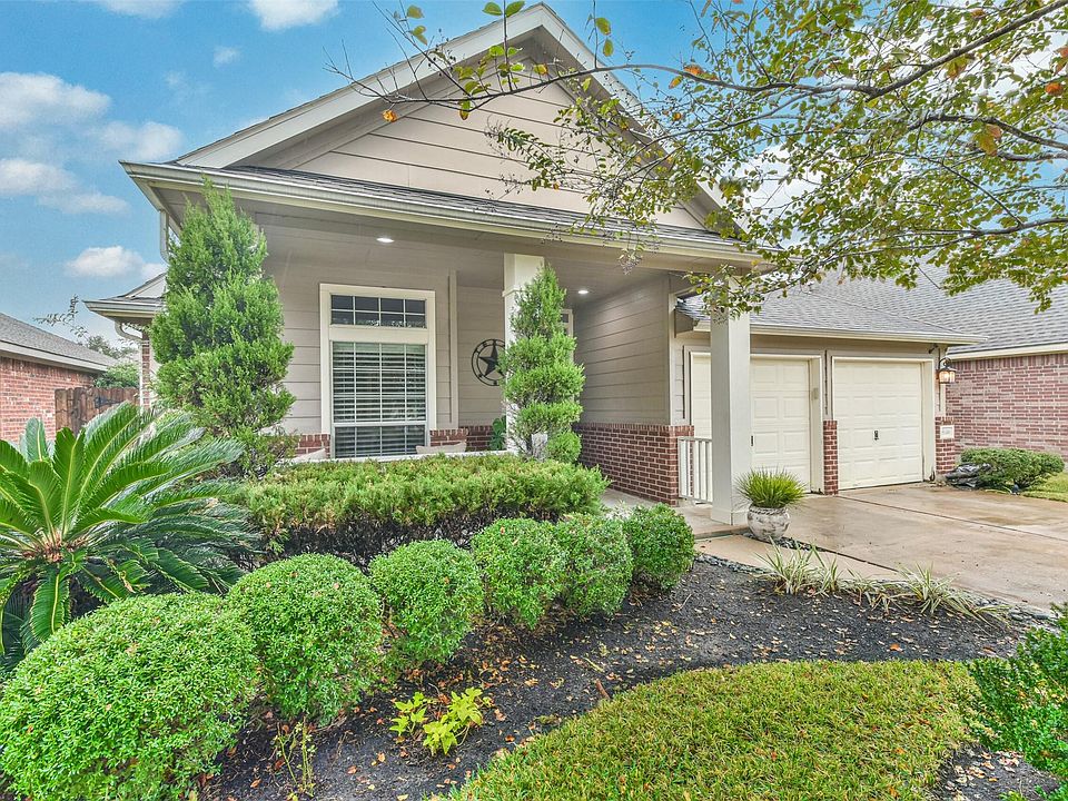 Multiple Offers Received. Welcome home to this adorable 3/2/2 in the sought after master planned community of Gleannloch Farms. You are greeted with warm southern charm as you approch the spacious covered front porch, perfect for sipping a cool drink on a warm Texas day. Neutral tone tile floors lead you to the open concept kitchen/living areas with plantation shutters, updated light fixtures and ceiling fan, cozy cast stone fireplace with gas log and a view of the sparking pool.Kitchen features stainless appliances, corian counters, warm stained cabinets and updated light fixture in the breakfast area.Primary bedroom features plantation shutters, walk in closet,ensuite bath with double sinks, garden tub and separate shower.The backyard oasis features pool with rock waterfall, upgraded landscaping, covered patio with iron fence to block pool access for added safety. amenities include pools, ball fields, tennis courts, fitness center, golf course, lakes, parks and so much more!