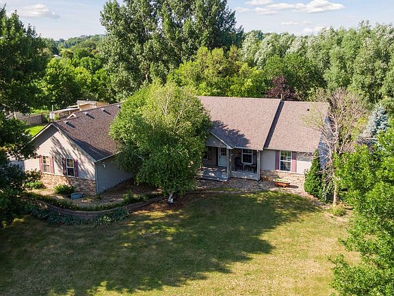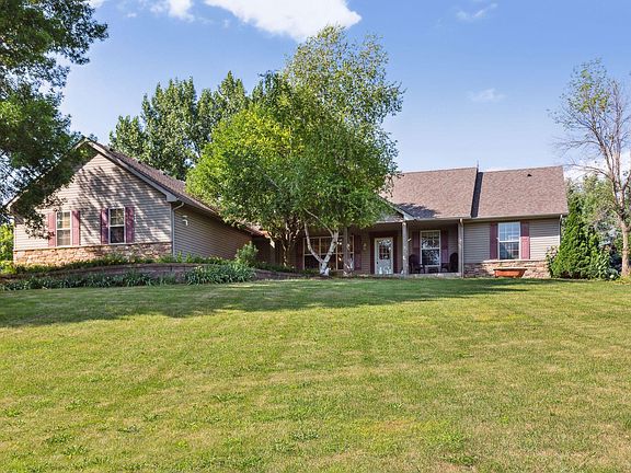 Welcome to this wonderful rambler on 10 acres!! 4 bedrooms and 3 bathrooms. The property includes an oversized 3-car attached garage and a 28x32 pole building, offering plenty of storage and parking options. On the main level, you'll find 3 bedrooms, including a Master Suite with a private bathroom. The open living room, dining area, and kitchen provide a spacious and inviting atmosphere, complete with excellent storage and a center island with seating. Another highlight of the main level is the additional family room with a fireplace. The 4-season porch features a vaulted ceiling and access to the deck. The lower level boasts a family room, a bonus room, a 4th bedroom, and a three-quarter bathroom, providing additional space. The property offers ample room to enjoy outdoor activities, enhanced by a huge deck and patio. Lakeville School District. This home truly offers a delightful combination of comfort and functionality. Contract for deed terms are possible.