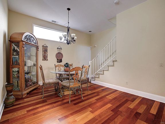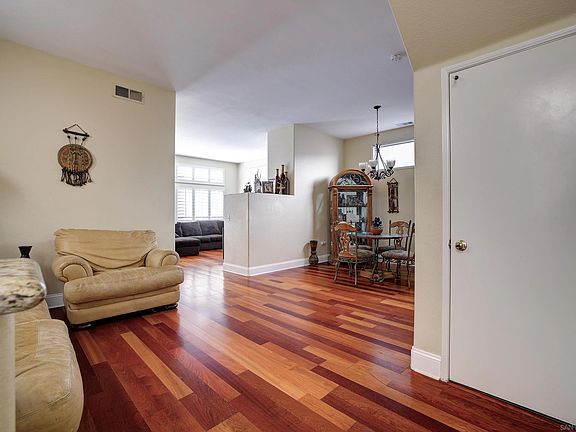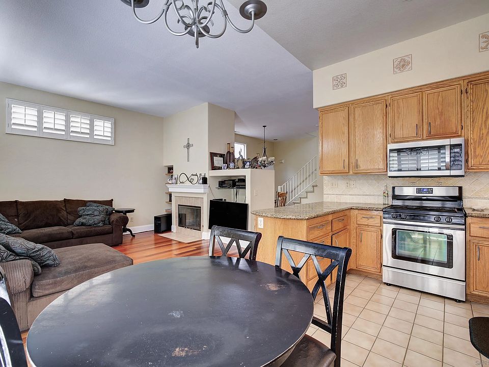 Experience the best of San Diego living in this charming 4-bedroom, 2.5-bath home within the secure, gated Casablanca community. The location is a key highlight, placing you within easy walking distance of the Mira Mesa Gateway shopping center, where you'll find a movie theater, a variety of restaurants, and plenty of retail options. Inside, the main living areas are adorned with elegant engineered hardwood floors, and plantation shutters are featured throughout the home for a cohesive, classic look. The family room provides a cozy retreat with a fireplace and media niche. Step outside to a beautifully stamped concrete patio with no neighbors directly behind, ensuring privacy and tranquility. An upstairs laundry area adds convenience to this perfectly located and thoughtfully designed home.
