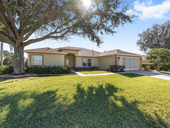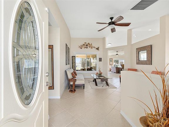 Once you step through the front door of this Providence 3-bedroom, 2-bath model, you’ll be instantly captivated by the spectacular view of the Masters Golf Course. This home enjoys one of the best locations in the community — directly across from the Horizon Pool and Horizon Center, with Bocce and Shuffleboard courts just steps away, and only a short 3–5 minute walk to the Liberty Grille Restaurant and Golf Course. The inviting floor plan includes a living room, dining room, and family room, with a split bedroom design for added privacy. Ceramic tile flooring runs throughout the main living areas, while the bedrooms are comfortably carpeted. The kitchen features abundant maple cabinetry, a tiled backsplash, vaulted ceiling, and plenty of workspace for the home chef.The family room and large screened lanai both take full advantage of the sweeping golf course views — the perfect spot to relax or entertain. The primary suite features bay windows, twin closets, and an ensuite bath with dual vanities, separate shower, and soaking tub. For golf enthusiasts, a practice green and chipping area with bunkers is just 100 yards away. The extended 24-foot garage includes a privacy screen and extra space for storage or a work area. With its superb location, outstanding golf views, and well-designed floor plan, this Providence model is the one you’ve been waiting for. Make plans to see it today!