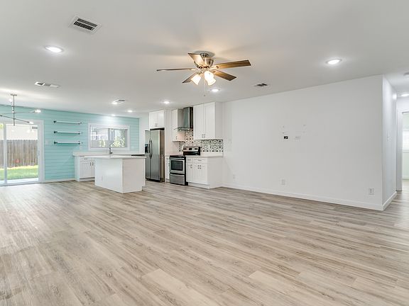 Welcome to this beautifully maintained One-story home! As you step through the front door, you'll be enchanted by the updates and attention to detail. The updated luxury vinyl flooring flows seamlessly throughout, creating a modern and inviting ambiance that will make you feel right at home. The interior and exterior paint add polished sophistication and ensure a move-in ready experience. Prepare to be impressed by the thoughtful upgrades that enhance both comfort and energy efficiency. Details include fully foam-insulated attic! The heart of the home, the kitchen, is an absolute showstopper. Indulge your culinary skills in this open concept kitchen, featuring stunning quartz countertops, sleek all-white shaker cabinets with soft-close drawers, and a generous 6-ft island that offers ample storage and workspace. The modern appliances, including the LG smart Wi-Fi enabled electric range with air fry and easy clean features, cater to the demands of contemporary living and make meal preparation an absolute pleasure. Unwind and rejuvenate in the luxurious bathrooms that exude tranquility and style. The hall bathroom offers a walk-in shower, vanity, and updated lighting. The master bath provides a personal sanctuary with a blissful rain shower head, and a custom barn door. Thoughtful safety and convenience features include a Ring doorbell, strategically placed floodlights, and security cameras providing peace of mind. The garage has been thoughtfully designed with wall insulation, durable epoxy flooring, and an insulated garage door, as well as a split unit air conditioning and heating system, and two closets with plenty of shelves, ensuring a secure and organized space for your vehicles and/or storage needs. Step outside and be greeted by the 9x12 Mueller shed sitting atop the meticulously landscaped yard, adorned with fresh sod that creates a lush and vibrant setting. The extended driveway and patio offer ample space for outdoor entertaining and relaxation. This location offers unbeatable convenience, just minutes from UTSA, USAA, the Medical Center, La Cantera, and The Rim for plenty of shopping and dining.