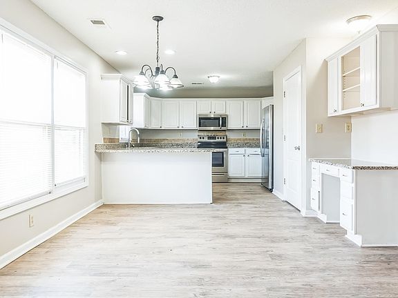 Move-in ready 3-bedroom, 2. 5-bathroom home in the sought-after Windchase of Berryhill community! This charming home features a formal living room or dining room at the front of the house and an open-concept living area with a cozy fireplace. The kitchen boasts granite countertops, stainless steel appliances, and a convenient built-in desk nook—perfect for meal planning or working from home. The primary suite is located on the main floor and includes a large walk-in closet and a spa like ensuite. Upstairs, you’ll find two spacious secondary bedrooms, each with large closets for ample storage and the full hallway bath. Enjoy your time outdoors on the covered front porch or back patio overlooking the expansive fenced back yard. Don’t miss your chance to own this beautiful home—schedule your showing today!