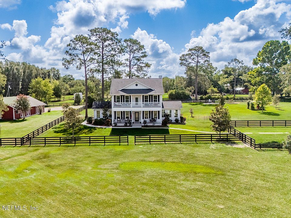 A Rare Offering of Timeless Beauty and Unmatched Setting - Welcome to what may be the most spectacular property on the market today! A stunning custom home set on just over 5 acres of peaceful countryside, just minutes from the heart of Alachua. With breathtaking views of rolling farmland in every direction, this is where elegance meets serenity. From the moment you arrive, the charm of this two-story Southern-style home will capture your heart. Expansive porches stretch across the entire front of both levels, inviting you to slow down and savor the views. Inside, the home is filled with natural light and designed for both comfort and entertaining. The spacious owners suite is a true retreat, featuring a cozy sitting area surrounded by built-in bookshelves, the perfect spot to unwind. The luxurious en suite bath offers separate his-and-her closets, a freestanding tub, and a walk-in shower. The open and airy floor plan continues with a sunroom warmed by a gas fireplace, a screened back patio ideal for enjoying quiet mornings, and a large laundry room with bonus space that could serve as a home gym, craft room, or additional storage. Upstairs you'll find three bedrooms and two full baths, including a Jack-and-Jill, plus a flexible bonus area - perfect as a second living room, playroom, or home office. Outside, the property is fenced with attractive 4-board fencing, perfect for animals and adding classic country appeal. A jasmine-covered sitting area provides a front-row seat to the most breathtaking sunsets. The 2,300 sq ft barn, once a 10-stall horse barn, has been thoughtfully converted to garage and storage space but could easily be returned to its original purpose or adapted for your needs, plus a three person sauna perfect for unwinding. This is more than a home, it's a lifestyle. A rare chance to own a property where every detail invites you to relax and enjoy the best of country living, all within easy reach of shopping, dining, and top-rated schools.
