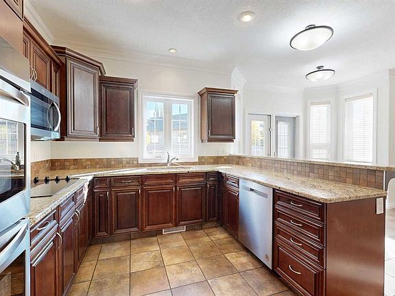 Prepare to be captivated by this exquisite, custom-built residence offering 2,200+ sq ft of unparalleled elegance and comfort in the sought-after community of Wedgewood. Step through a regal entrance featuring a stunning tiled foyer and a dramatic staircase highlighted by an intricate wrought iron railing. The main level invites relaxation and entertaining with a formal living room centered around a cozy gas fireplace and showcasing hardwood flooring. The heart of the home is the chef's kitchen, a culinary dream equipped with: granite countertops, two built-in wall ovens, flat top stove, sleek under-cabinet lighting, practical eating bar, and stainless steel appliances. An adjacent, bright dining area flows seamlessly through to the large deck and backyard, perfect for memorable gatherings. Convenience is key with valuable main floor office space, a dedicated laundry area with sink & ample countertops and separate, 2- piece powder room. Ascend to the upper level to discover the lavish primary bedroom, a true sanctuary featuring its own gas fireplace for a touch of romance. The suite includes a huge walk-in, customized closet offering exceptional storage and organization. The accompanying luxurious spa-inspired ensuite offers the ultimate in relaxation with a jetted tub, a tiled, jetted shower, double sinks and a private water closet. Main bathroom, hall closets and three spacious additional bedrooms complete the upper floor, providing ample space for family or guests. The fully developed basement is an entertainer's paradise, boasting a stylish entertainment bar, large, private fifth bedroom with a roomy closet, and well-appointed full bathroom. For year-round comfort, both the basement and the oversized double garage feature in-floor heating. For the summer heat, there is air conditioning to help you stay cool. Interior was just freshly painted making it truly move-in ready. This home isn't just a house; it's a lifestyle, offering grandeur living at a truly reasonable price. Don't miss the chance to make it yours!