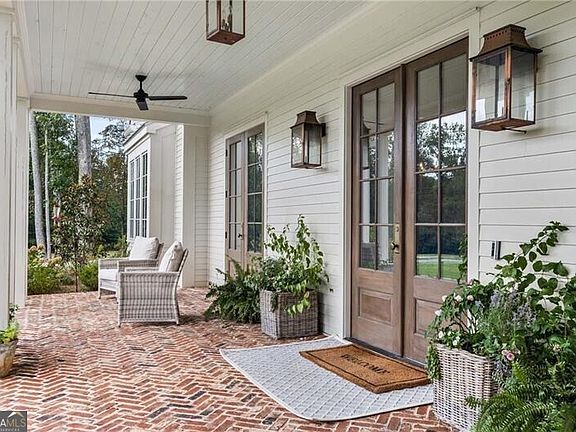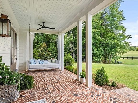 Experience refined country living in this newly built timeless estate on 12 lush acres in Chattahoochee Hills, Georgia- just 10 minutes from Serenbe. Built by McKinney Builders, this five-bedroom, four-bath home blends luxury design, enduring materials, and sustainable systems for a lifestyle of comfort and efficiency. Constructed with James Hardie siding, Pella windows, solid wood doors, and spray foam insulation, the home features geothermal heating and cooling for year-round energy savings. The welcoming front porch with a suspended daybed is perfect for morning coffee overlooking lush green space, while the covered back deck with a brick wood-burning fireplace is ideal for entertaining. Inside, enjoy transitional luxury interiors with hardwood floors, custom trim-work, shiplap accents, and architectural archways. The gourmet kitchen features marble countertops, a ZLINE gas range, spacious island with prep sink, and walk-in pantry. The primary suite includes a sitting room that opens to the porch, dual vanities, soaking tub, step-in shower, and his-and-hers closets. Upstairs, find three bedrooms, two baths, and a flex space for an office, playroom, or media room. The three-car garage is spacious for cars, ATVs, and more! Above the garage is unfinished space that could easily be completed as a 6th bedroom, full bath, and additional living space! Surrounded by pasture and mature trees with four-board fencing, the property offers privacy and peaceful views. With a pool-ready backyard, this estate combines modern energy efficiency, timeless craftsmanship, and proximity to Serenbe's farm-to-table wellness lifestyle.