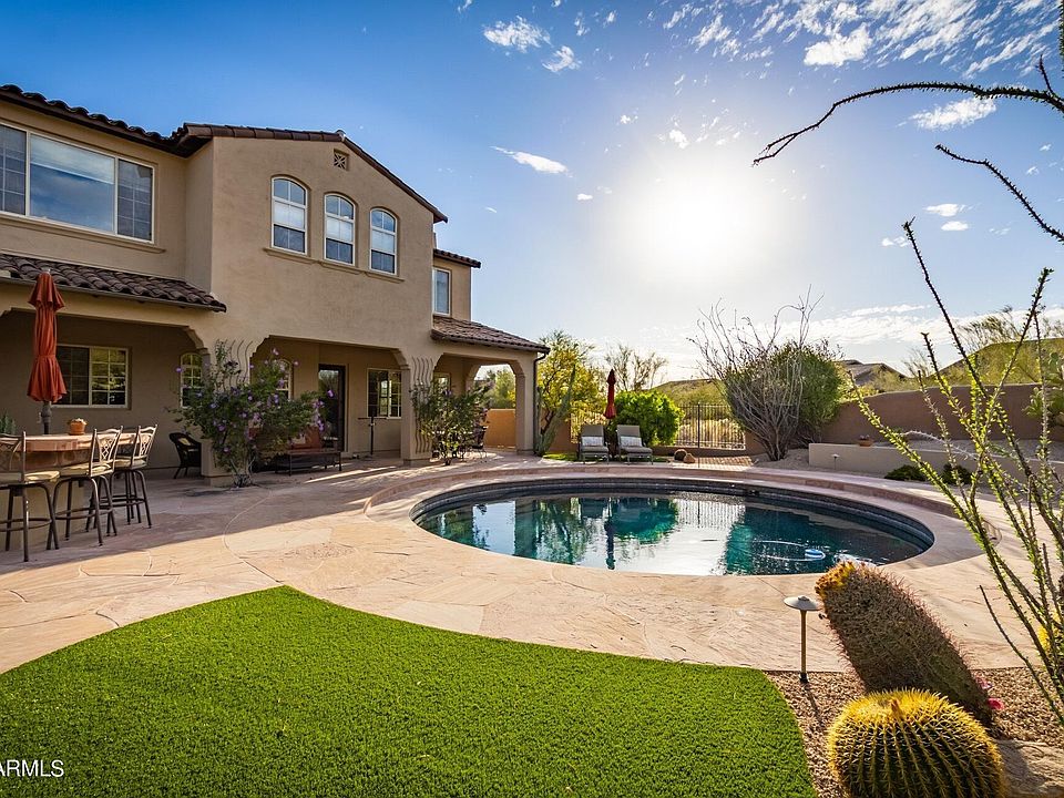 Wonderful 2 story Camelot home in the Desert Camp area of DC Ranch. Moments from Desert Camp recreational amenities, path and trail system and Market Street restaurants. Perfect situation with all bedrooms upstairs and entertaining down. Bonus room , 2 dens and plenty of parking. Outside spaces draw you into a world of fun. Circular swimming pool, built in BBQ and plenty of room to roam. This home sits at the end of a dead end Cul Du Sac with open space on 3 sides. A must see. 2021-05-20