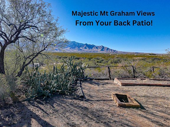 CHARMING DESERT COTTAGE, HILLTOP, PANORAMIC VIEWS!: PRICED AT RECENT APPARAISAL. Escape to this Charming Desert cottage, perched on 1.48 acres of scenic hilltop property south of Safford. Offering panoramic views of Mt. Graham, this home is a peaceful retreat where you can soak in the beauty of Arizona's landscapes.Enjoy serene evenings on the covered back patio, watching the sunset paint the sky while quail and other wildlife roam the property. Whether you're looking for a tranquil getaway or a unique investment opportunity, this property is ideal for an Airbnb rental or a perfect first home.For those who need space for projects or storage, this property includes a large 4-car shop with 3 bays, a separate storage shed, and a greenhouse, making it a dream for hobbyists, gardeners, and lovers of the outdoors! Owner is licensed to sell real estate in Arizona and is the listing agent.
