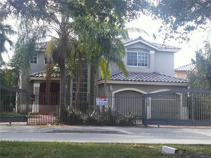 Large 4 bedroom, 3 bathroom, two story single family home. It is in an amazing location, close to shops and schools. The home has a lovely front facade, surrounded by an elegant black double-entry gate, a circular driveway, and lush, mature palm trees. The home features an open concept layout, tile on first floor and wood laminate on the second floor, pool, large overhang, and a spacious two-car garage. This home is ideal for entertaining friends and family. Sold as-is. Great potential!