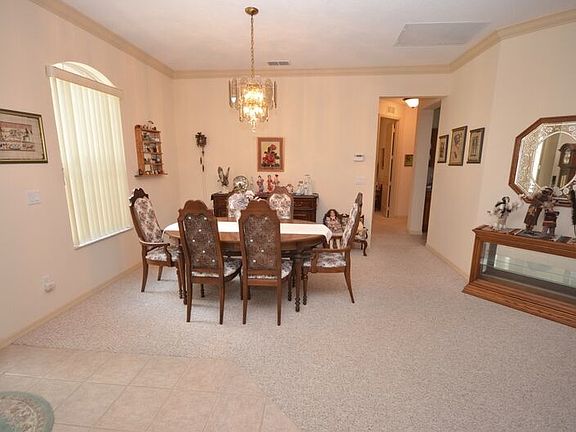 This spacious Danbury model home is located on the golf course in the much sought after gated 55+ community of On Top of the World. The open floor plan features formal dining on your left, a library/den on your right and living room forward. The Master bedroom suite on the right side of the home offers 2 walk-in closets, a large master bath with double sinks, step-in shower, and soaking tub. Split bedroom floor plan has 2 guest bedrooms and guest bath on the left side on the home, and provides privacy when hosting guests. Spacious kitchen with bar-height eat-at counter and Morning room. Like to entertain? A spacious lanai under roof is accessed by a triple slider off the living room and a double slider at the Morning room, and transitions to an open patio. The sizeable Family room sits behind the kitchen and Morning room. Home boasts golf course views, 9'4" ceilings throughout, crown molding, tiled entry, kitchen, and baths, inside laundry, roll-down hurricane shutters, and much more.