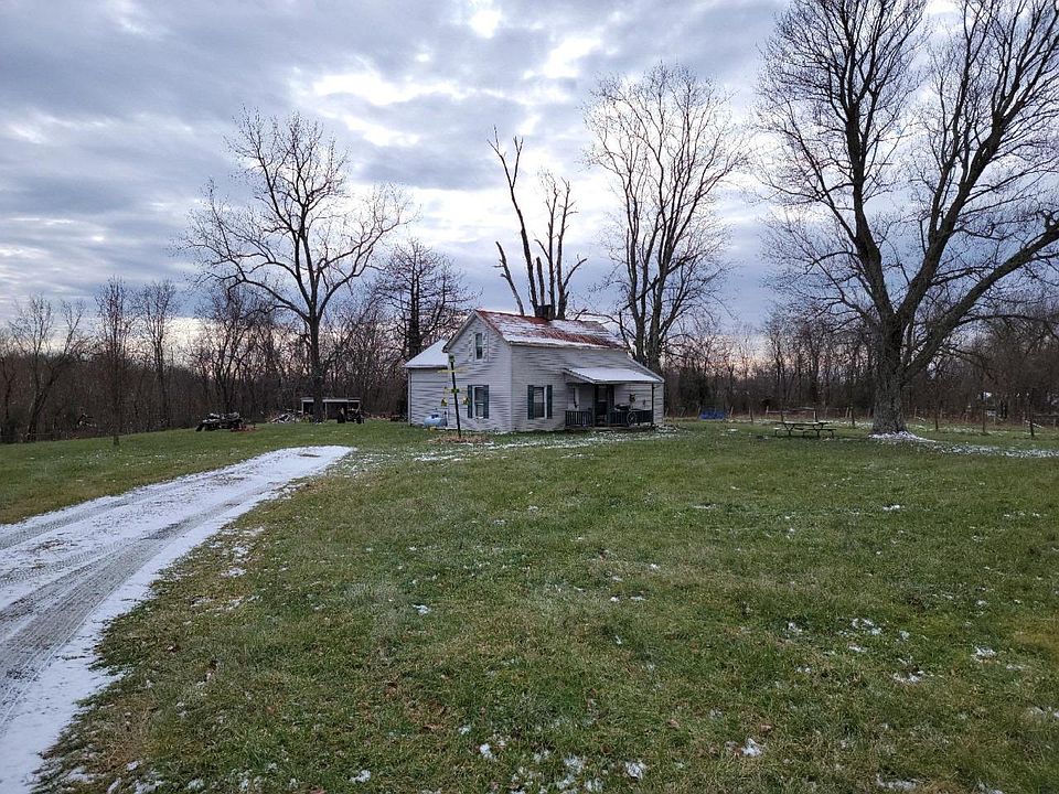 Awesome 27+ acres of wooded, rolling land with older farmhouse/hunters cabin with little or no value-being sold in as is condition. Property has frontage on Tapps Ridge & Markland Pike, City Water at property, partially fenced. Hunters Paradise!! Room to Roam!