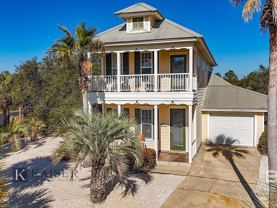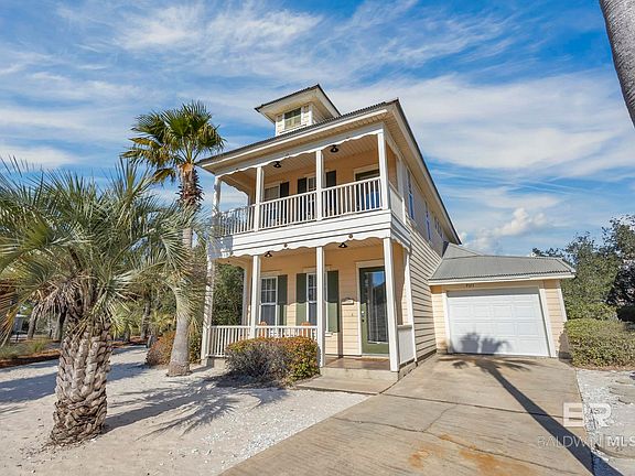 Beautiful two-story beach house with three bedrooms and three full baths (1 Master up and 1 Master down) in nearly 2,000 square feet of living space with two porches, a balcony with beautiful sunset views, and a golf cart. This home is located just steps away from the Gulf of Mexico in the private community of Martinique on the Gulf. Whether you’re seeking a primary residence, vacation home, or investment property, this home has the perfect combination of privacy, comfort and resort-style convenience that makes it a great fit for any buyer! This home comes fully furnished and with a golf cart as shown in the garage picture. Martinique on the Gulf (a private-gated community) has so much to offer, with deeded beach access, gulf front pool, indoor/outdoor heated pool, tennis and pickleball courts, fitness center, sauna, bike baths, and more! You’ll also just minutes away from Jesse’s on the Bay, Sassy Bass, Kiva Dunes Golf Course, Beach Club Resort & Spa, and new Dollar General Market! Rental history can be provided upon request. Buyer to verify all information during due diligence.