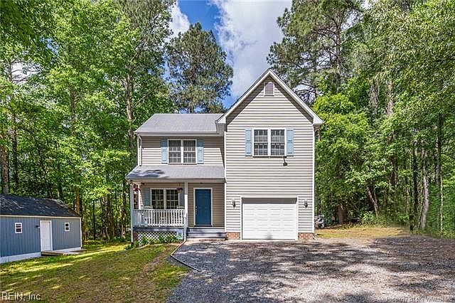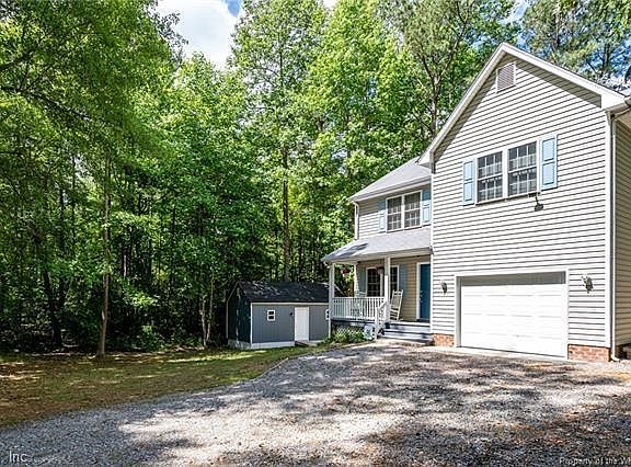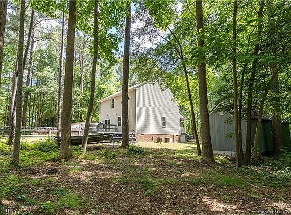 Come home to 2 private acres with lake view. Sellers have made updates such as wood floors downstairs, painting, new laminate beveled edge counter-tops, tile back splash & under cabinet lighting in kitchen, large pantry, tiled bathroom showers & floors, jetted tub. All appliances remain and are 4 years old. Half bath downstairs. New tankless hot water heater, new electric fireplace insert w/ remote generates heat. Enjoy the front porch or the improved & extended rear deck. Rear split rail fencing, infrared security lighting, crawlspace joists have been sealed & new vapor barrier added. New automatic garage door. Garage has been well insulated, sheetrocked, sealed floors & has workbench. New storage shed has well insulated walls & floor, includes power & outlets. Located 3 minutes from grocery store & pharmacy and 4.5 miles from I64. ***This is lakefront property however lake is privately owned & would require permission to access, but you still get to enjoy the view.