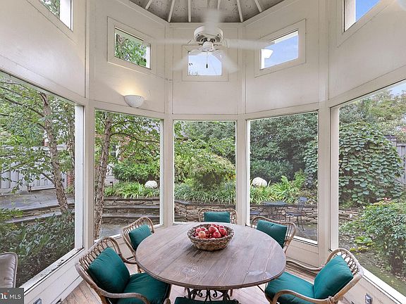 Not to be missed, this remarkable renovation and expansion by the renowned architect Richard Crone is an absolute showstopper! This four level brick beauty is filled with all of your favorite things and was featured on HGTV and various publications and programs as well as on a Silver Spring House Tour. Crone’s ingenious design relocated the main entrance of this magnificent home to Colesville Road Alley, which runs parallel to Colesville Road between Saint Andrews Way and Leighton. Opening the entry gate reveals the large jaw-dropping screened porch with a high-ceilinged octagonal dining area. The porch dining/sitting area is ideal for dining alfresco or relaxing while enjoying an evening or morning looking out at the beautiful formal gardens with a magnificent fieldstone patio. The beautifully landscaped and fenced Georgetown-like grounds were brilliantly designed by Lawrence V. Frank whose work is featured in the gorgeously illustrated book, Bold Romantic Gardens by James Van Sweden. So many outstanding features are found from the fourth level to the ground floor that it is difficult to list them all. The relaxing owner's retreat features French doors flanked by built in bookcases that lead to an adjoining open deck above the porch as well as a large, well-appointed walk-in closet. A possible professional home office is ideal for busy households and the floor plan is very flexible and ideal for multi-generational living or an au-pair suite. The home is perfect for hosting large holiday dinners or fundraisers. This architectural wonder has fabulous elements of design with clever repeating patterns from the rooflines looking down from the aerie on the fourth floor to the light-filled breakfast room which mirrors the screen porch. No less than 11 built-in bookcases can be found sprinkled on throughout the house for the avid reader and bookworm. Cleverly placed skylights, a separate two car garage, driveway and alley parking, a highly functional gourmet kitchen, a stunning breakfast nook plus so much more! A whole house generator too for those stormy or snowy days. Sligo Creek Park and the very popular Zinnias is just a short stroll from your door. Walk to Metro and the future Purple Line... you simply cannot beat the convenience. Holy Cross Hospital is 0.9 miles and a 4 minute drive. This is truly a gem of a property that is filled with sophisticated elements of design and function... and should not be missed. Lots of parking including an oversize detached 2 car garage and a driveway plus alley parking. Welcome home!
