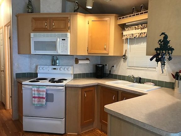All Snowbirds and Home Owners Welcome, 2004 Manufacture home in Camp A Wyle Resort & Condominium, 1 bedroom 1 bath, very well maintained. Partially Furnished, lots of storage. It has Hurricane Shutters & a 10x10 shed.. Horseshoes, Tennis, Community Pool, Miniature Golf, Shuffle Board, Basketball Court and much more. Dues include water & sewer and trash pickup & lawn maintenance & RV/Boat Storage, free internet at the clubhouse.
