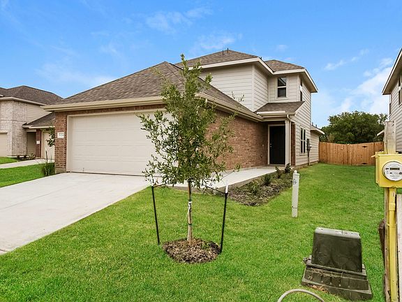 The Solis Plan is a charming two-story home featuring 3 bedrooms and 2.5 bathrooms. Designed with an open-concept layout, the first floor offers a spacious living and dining area that seamlessly flows into the kitchen, perfect for both relaxing and entertaining. The downstairs primary suite provides a peaceful retreat with a private bathroom and walk-in closet. Upstairs, you'll find two additional bedrooms, a full bathroom, and a cozy loft ideal for an office or reading nook. Features include wood-grain vinyl plank flooring, a two-car garage, fenced backyard, and a sprinkler system. All homes are SimplyMaintained for a $100 monthly fee that includes front and back yard lawn care and exterior pest control.