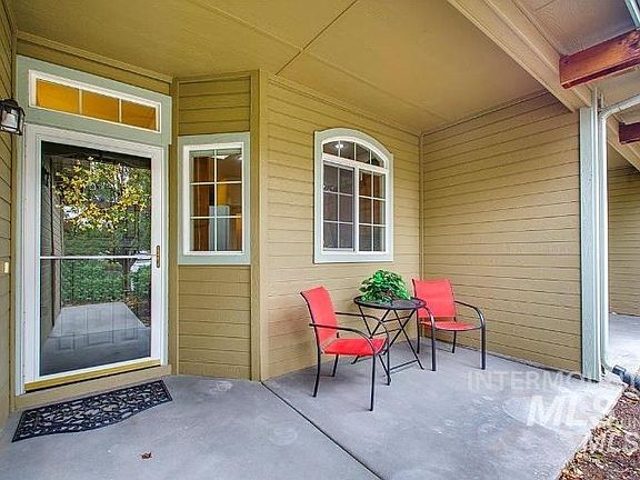This lovely townhome in a quiet West Boise neighborhood is turn-key move in perfect! Sunny south facing front yard, covered front porch, front and back doors both have storm doors, new carpet, new vinyl flooring in laundry room and bathrooms. Kitchen has signature Ted Mason high large window bringing in lots of light. Lots of storage including a pantry with a glass door and cherry wood cabinets. Large great room with eating area, large transomed windows and stacked stone fireplace. Archway to master and hall to bedrooms. New blinds in bedrooms. Automatic porch light timer. Low maintenance backyard has a partially covered patio. HOA dues cover common area maintenance, front yard maintenance, and pressurized irrigation. HVAC service was just done and the gutters were professionally cleaned a few weeks ago. Clean as a whistle!