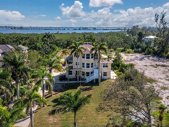 Don’t miss this exceptional opportunity to own over 3 ACRES of prime waterfront property. Perfectly positioned to capture stunning water views and unforgettable evening sunsets. Now offered at a newly reduced price, this remarkable estate combines privacy, space, and endless possibilities for coastal living at its finest. Welcome to your serene retreat along Palma Sola Bay. This beautifully designed three-level home offers 3 spacious bedrooms and 2.5 baths, including a private primary suite with a versatile bonus room, ideal for a home office, playroom, or guest space. The gourmet kitchen is a chef’s dream, featuring elegant finishes and a seamless flow into the inviting family room, perfect for both everyday living and entertaining. Multiple screened porches and balconies invite you to relax, unwind, and take in the peaceful surroundings. Head up to the widow’s peak for panoramic views of Palma Sola Bay, a special spot to start your morning or enjoy evening sunsets. The expansive, lush grounds offer ample space for gatherings, pets, or even future additions such as guesthouse, or garden retreat. With direct water access, abundant outdoor space, and the tranquility of nature, this property offers the rare chance to create your forever home in paradise. Don’t miss this rare opportunity, a BAYFRONT GEM AT AN INCREDIBLE NEW PRICE!
