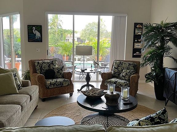 Beautifully furnished Mediterranean style single-family house in the gated community of Old Orchid. Available for $6,500 per month, this spacious 2BDRM/2BA/Office home is pet free/smoke free with comfortable accommodations for those looking to spend their winters in the Florida sun or the visiting executive. Re-piped and renovated in 2023, new roof and energy efficient CAT 5 hurricane windows/sliders installed in 2024. Attached garage, in-unit laundry and a spa size pool with expansive 60' patio overlooking community waterway.