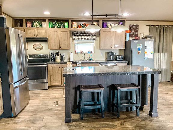 Great place in the country on 1.99 acres. Great for a horse or 2. Build a nice shop or house on the additional tract next door. Beautiful manufactured home with open living concept. Large open dining and living area. Kitchen has a nice island. Nice front and back porches. Chain link fenced in backyard. Some barbed wire fencing. There used to be a home on the tract next to the manufactured home.