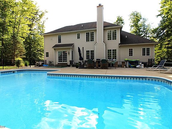Unbelievably sized "Much Sought After 6/7 Bedroom Colonial Home in Rory Glen Estates all sitting on 3 wonderous wooded acres that backs up to the Geauga Metro Parks"! The long driveway flows to the all inspiring awe of HOME & NATURE ABOUND! Open Concept GOURMET EAT-IN-KITCHEN offering plenty of cabinets, granite countertops & butler's pantry, all appliances to stay! ROOM TO ROAM AROUND! Elegant sitting area with gas fireplace, overlooking the Striking and SPARKLING inground pool with all the outdoor furniture and gas grill included, and the SERENE view of back wooded lot. 2 Story OPEN GRAND LIVING ROOM centered perfectly for all the entertainment you could want! Formal Dining Room with trey ceilings. First floor office. Master Bedroom, Master Bathroom, Jetted Tub, Walk in Closet. Upstairs to 4 Nicely sized Bedrooms and 2 more full bathrooms, laundry area with washer n dryer, overlooking the Lively Living Space Below! Downstairs to 2nd living space with full second kitchen (all applian