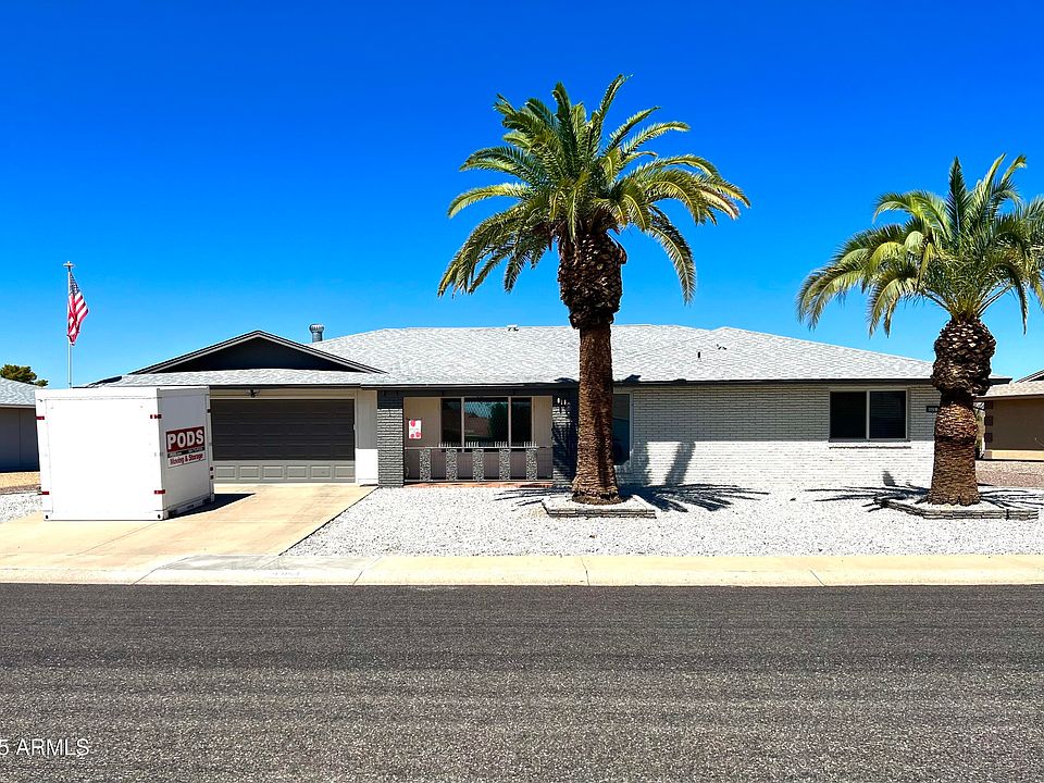 Beautifully Updated 2-Bed, 2-Bath Home in Sun City. Welcome to this beautifully remodeled single-family home in the heart of Sun City, offering 2 spacious bedrooms and 2 modern bathrooms. Fully renovated in 2021, this home features numerous upgrades including AC unit, dual-pane windows, interior/exterior paint, wood plank tile flooring, carpet and updated plumbing/lighting fixtures. Enjoy the best of both worlds with a large formal living and dining room as well as a comfortable family room, perfect for entertaining or relaxing. The gorgeous kitchen is a beautiful, boasting white shaker cabinets, quartz countertops, a tiled backsplash, stainless steel appliances, and a convenient breakfast bar. The primary suite offers a private retreat with a remodeled ensuite bathroom, walk-in shower, and a good-sized walk-in closet. The guest bedroom is oversized and features its own walk-in closet. A spacious laundry room provides flexible space that can double as an office, craft room, or extra storage. Step outside to a large, covered patio, ideal for enjoying Arizona's beautiful weather in the shade. A full 2-car garage adds extra convenience. Located in a peaceful neighborhood yet close to shopping, restaurants, the loop 101 freeway, and all the amenities that make Sun City a top destination for active adult living. Don't miss the chance to own this move-in-ready gem in one of Arizona's most sought-after 55+ communities!
