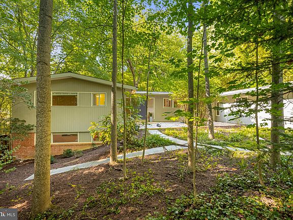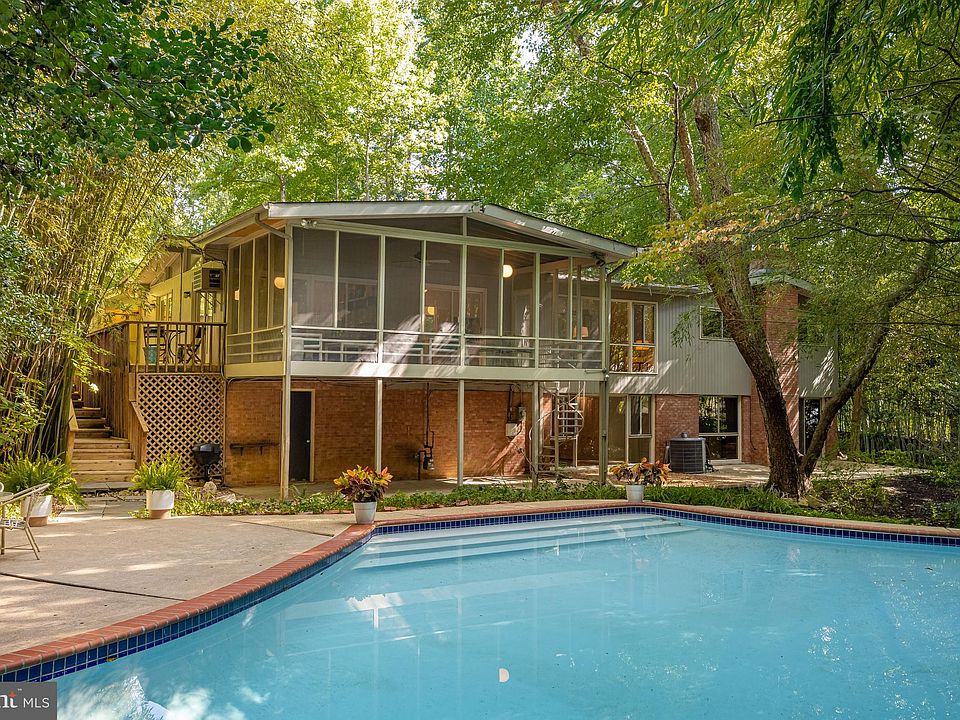 This is your very unique opportunity to purchase a Ken Freeman-designed Mid-Century Modern home, built for its one owner in 1965, and on the market for the first time in 60 years. The property sits on half an acre in a private oasis on a quiet cul-de-sac of other mid century modern homes in the highly coveted neighborhood of Mantua. This home has over 3400 SF of finished living space, ten foot vaulted ceilings, original hardwood floors, and floor-to-ceiling plate glass windows that overlook a verdant backyard and a large in-ground heated plaster pool, long enough for lap swimming and deep enough for diving from the deep end diving board. The kitchen is updated with white wooden cabinets, quartz countertops, and blue glass mosaic tile and opens onto the combined dining room and living room. A redwood lined sunroom sits off the kitchen with Saltillo tile floors, skylights, and Andersen French doors leading to a side deck for grilling and overlooking and accessing the sparkling pool. A large screened-in porch sits up in the trees for quiet afternoons of reading, dining, and overlooks the pool and extensively landscaped backyard. A steel spiral staircase provide direct access from the screened-in porch to the extensive patios and the pool. Three bedrooms are on the main floor and a fourth is on the lower level floor for guests, teenagers or a home office. The primary bedroom has an en suite bathroom with tiled shower. The two upstairs bedrooms share a full hall bathroom. All bedrooms have generous closets. The entire lower level space is finished. New flooring in the downstairs family room makes the large, bright space suitable for a wide range of uses with the brick gas fireplace, sliding doors to an outdoor patio, and a wet bar with stereo room. You will also find a large fourth bedroom with walk-in closet and adjacent full bath. Beyond this on the lower level is a large finished multipurpose room with built in bookcases, storage closets, hardwood floors, and sliding doors to the back patio, big enough to be a playroom and home office. Laundry and more storage is located off this room. In addition to the original mid century architecture, the backyard makes this property distinctive. Floor to ceiling windows and doors lead to patios on the lower floor for easy indoor-outdoor living and convenient access to the private fenced yard for pets and children. Landscaped originally with a Japanese garden, the land off the patios offers opportunity for many styles of gardens. A pool and tool storage room is accessed from the back patio. Mature vegetation ensures complete privacy. The private and expansive space and pool area back up to open land with trails. Ready to move in, this one-owner home is rare in that it retains most of its original features including a shoji screen at the entry foyer. Well-preserved, it is a once-in-a-lifetime opportunity for the lover of authentic mid-century architecture who is interested in preserving and living in a design icon. The neighborhood of Mantua is a truly special, conveniently located to everything in the DMV, with much desired schools, community pool and tennis club and miles of walking trails. Open Houses all weekend!