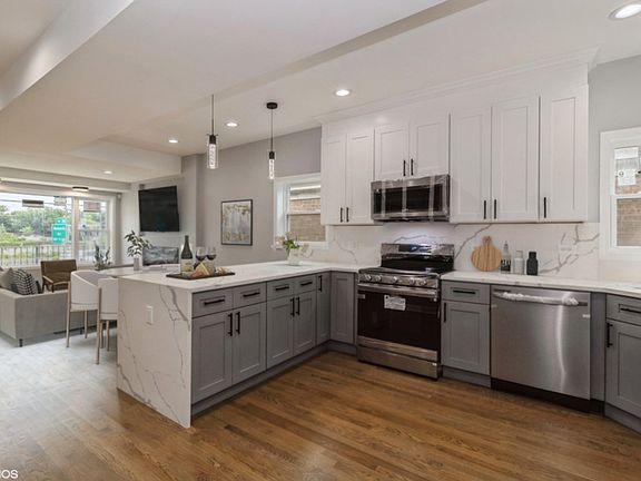 Welcome to Your Dream Home! This beautifully updated 4-bedroom, 3-bathroom home is the perfect mix of modern luxury and timeless charm. Step into a stunning new kitchen with gorgeous white cabinetry and quartz countertops, designed to for open entertainment and family gatherings. The first floor offers versatility with a spacious bedroom, ideal as a guest room or home office. Upstairs, three generously sized bedrooms provide ample comfort and space for everyone, while a conveniently located second-floor laundry room adds to the ease of daily living. The fully finished lower level is an entertainer's dream, featuring a family room with a wet bar and a full bathroom-a perfect spot for gatherings or quiet relaxation. Situated in a prime location, this home is just steps from public transportation and a short drive to museums, parks, universities, and more. Don't miss out on this incredible opportunity to own a beautifully updated home in a desirable area. Schedule your showing today!