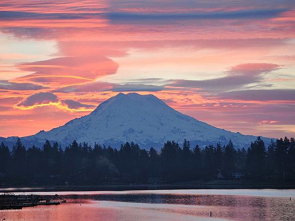 This home is located within a few minutes drive of Ft. Lewis and McChord, and is next door to American Lake Park and Boat Launch on Veterans Drive, in a wooded park-like setting; spectacular views next door at the City Park of Mount Rainier and American Lake in a serene, secure neighborhood, and there are 2 golf courses within 2 miles of home, and super walking areas are close by as well. The location is only 3 miles from downtown Lakewood, with all the stores, entertainment, and shopping you would want.