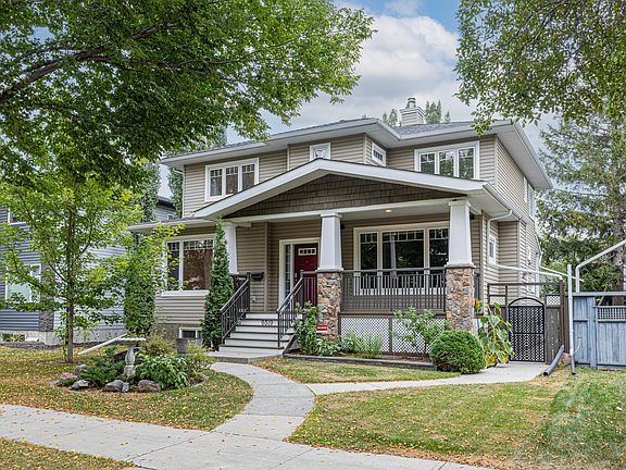 Full width INFILL in Bonnie Doon! Welcome to this spectacular Craftsman style Centennial Homes build with over 3800 sq ft of living space! The front veranda provides beautiful curb appeal with sunny west exposure. The main floor features a formal living room with gas fireplace perfect for cozy fall evenings, 9' ceiling height, a formal dining room with glass panelled pocket doors and exquisit cast iron air returns throughout highlighting the Craftsman style. The kitchen features stainless steel GE Profile appliances, undercabinet lighting, a full size pantry, full height CUSTOM MAPLE cabinets with additional windows, a built in dining table, the upgrades are endless! Up, the primary suite is HUGE with a generous walk in closet, an ensuite oasis with jetted tub, oversized tiled shower and makeup vanity. There are 2 additional bedrooms and a huge linen closet! The basement has SEPERATE ENTRANCE and a second kitchen! OVERSIZED garage, IMMACULATE location close to the river valley, this property is PERFECT!