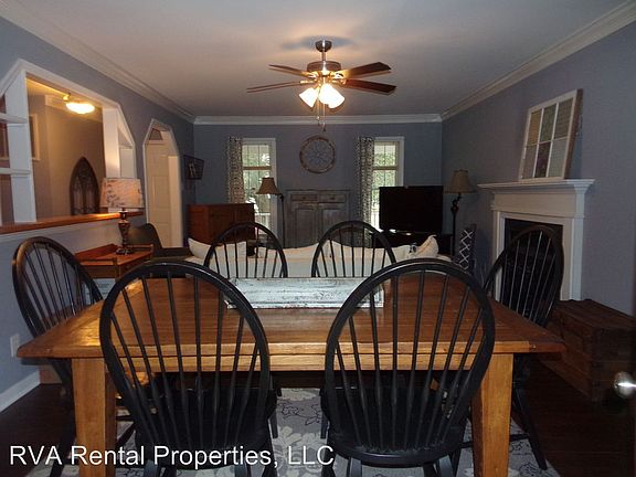 Spacious, 3 bdrms, 2 full bath ranch. - Great location off Hull Street in the Fawn Creek Subdivision, schools are Spring Run, Bailey Bridge and Manchester. Adorable rancher with an open concept and amazing architecture. Private front and back yard. Enjoy beautiful days on the covered country front porch or on the over sized three tiered deck. This home also features an extra long 1 car garage with enough room for a car and a storage/work shop area with direct entrance to the home. Inside you will find a gorgeous open living room/dining room kitchen concept. Great arched doorways, open walls with built in shelving and so much more. The hall, living and dining room are high end dark laminate wood flooring and looks amazing. The back door to the amazing deck is a beautiful stained glass. The living room is large enough to be both a living room and dining room, with a gas fireplace and over lighting and ceiling fans. The eat in kitchen has granite counter tops and tiled back splash. Crown molding grace the living room and kitchen. All three bedrooms are carpeted with over head lighting and are spacious The master bedroom has a full master bath and over head light and ceiling fan. This home also features a laundry room closet with shelving, attic space, extra garage storage, home is light and bright, central ac and heat, gorgeous back yard and deck with a dog pen if needed. (RLNE2593825)