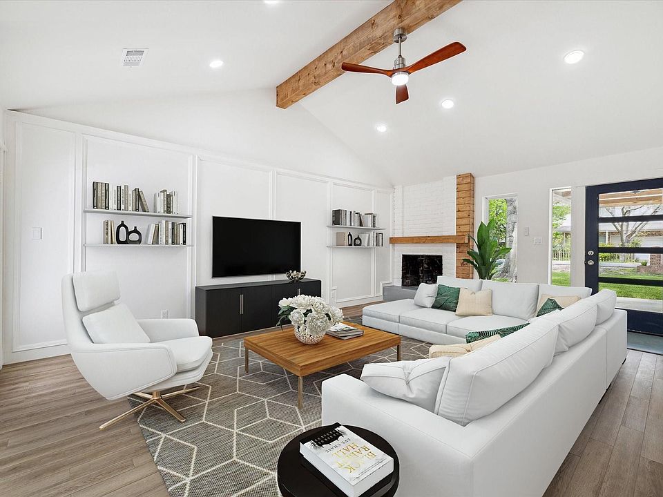STUNNING "down to the studs" recent remodel! 4 bedrooms & 2.5 baths are paired w/ light-drenched, open-concept living spaces w/ bespoke wood accents, adding warm extra dimension to this distinctively modern vision of a home! Living spaces are subtly separated but open, allowing you to cater the spaces to how YOU LIVE! House boasts recent roof, recent wiring & plumbing, recent electric breaker box, recent attic insulation, almost brand-new kitchen AND bathrooms : recent cabinetry, recent sinks, recent fixtures, recent lights, recent countertops, tile, backsplash, recent stainless-steel appliances plus refrigerator INCLUDED with lease! Luxury vinyl plank flooring was installed all throughout! Big closets & tons of extra storage! Tons! The master bedroom & spa-like master bathroom are ALL RECENT CONSTRUCTION! What a welcoming retreat w/ an airy vaulted ceiling & huge windows & French doors overlooking the HUGE backyard! Outside, there's landscaping & a recent fence! SEE IT TODAY!!