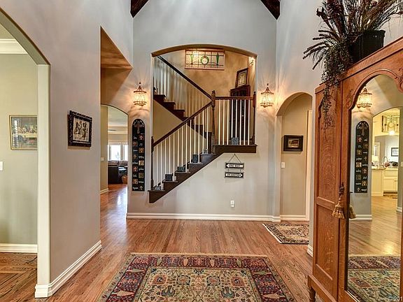Beautiful Tanglewood Estates home on cul-de-sac street, w/ premium lot that backs up to greenbelt/2-story. 4/3/3 with hrdwds thru out, updated kit, 3 car tandem grg w/ epoxy floor; outdoor fireplace wrap around patio; gorgeous view; Jenks school district.