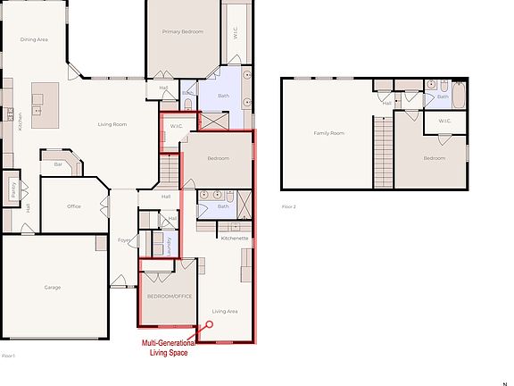 A standout feature of this home is the separate multi-generational wing, discreetly tucked behind a sliding barn door. This private retreat includes its own living room, dining area, kitchenette with farmhouse sink, built-in cabinetry, two bedrooms & full bath, offering comfort, independence & privacy for loved ones or long-term guests.