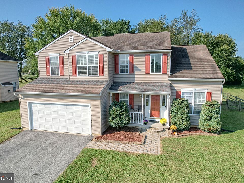 Welcome home! Enjoy walking up to the front porch that you can sit out on into the foyer of this well cared for home. On the first floor you will find a living room, dining room, kitchen with eating area and sliding door to generous sized deck to enjoy your morning coffee or relax on after a long day overlooking a lovely fenced rear yard. The property line goes beyond the fence and backs to a wooded area which backs to open space. Also, on the first floor you will find a lovely family room with a fireplace to enjoy. There is a half bath and access to the 2 car garage and basement. As you go upstairs you will find the primary bedroom with 2 walk in closets and primary bathroom with soaking tub for your relaxation, dual sinks and shower. There is also 3 additional generous sized bedrooms, bathroom and laundry room. The updates to this home include a new garage door, motor and opener in 2023, Whirlpool dryer 2024, Smartcore Ultra-Premium water proof flooring installed in the kitchen, foyer, and 3 bathrooms in 2025, vinyl LVT flooring upstairs hallway and 1 bedroom 2021, freshly painted shutters, on and around front door and around garage door 2025.