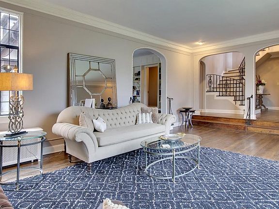 FABULOUS Renovation in this 3700+ SF Tudor which beams with natural sunlight. Starting with the KITCHEN expansion opening to Family Room, NEW White Custom Cabinets/white quartz, grey island with seating for 3, Jenn Air Stainless steel appliance, Microwave Drawer, white Apron Sink. Wine/beverage area is conveniently located in the kitchen w/wine frig and great serving area. ALL Hardwood floors have been refinished both main/upstairs with chocolate stain. This home offers incredible CIRCULAR flow with dramatic step down great room w/ bay window/FP and 12 Ft ceilings. The dramatic circular staircase is OPEN to the 2nd floor offering a feel of "newly" built home. Charming powder room has been redone with a "glamorous feel" w/mirrored vanity. The first floor is finished with cozy dining room with built-ins and Sunroom(currently awaiting new windows) will give away to an open front to back from kitchen - Family - to Sunroom. The GENEROUS Master Retreat has Newly designed Marble Bathroom, walk-in shower with glass door and lovely grey double sink vanity w/marble top, OPENING to dressing room complete with tons of hanging space and connected to the NEW laundry room. Two bedrooms share a bathroom, also with new flooring/custom vanity and newly glazed tub. The 4th bedroom is ensuite and charmed with new vanity and tiled shower/tub. The LL currently being finished, completely waterproofed and has a full bathroom, and window wells.