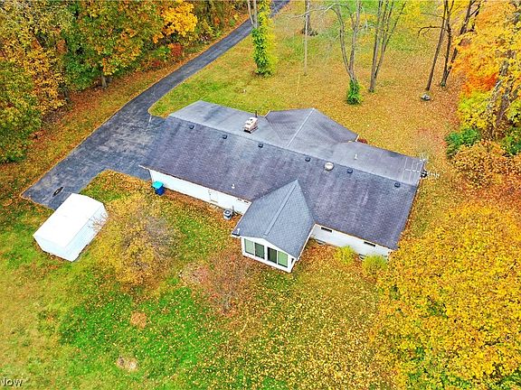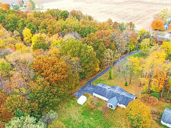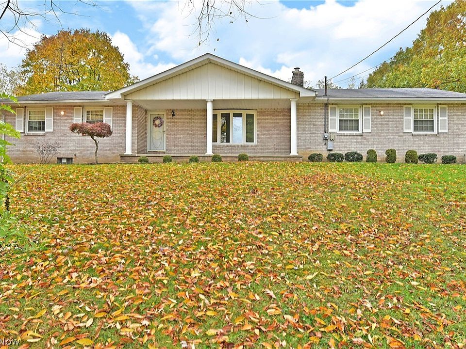 Far off the road and down a winding, tree lined driveway, this remarkable ranch sits overlooking the hillside with its move-in-ready offering! Autumn colors paint a scenic picture of privacy and serenity alike with the Lordstown property. The brick façade gives way to a covered front patio as three car attached parking wraps around the side. Through the front door, a carpeted hall takes you past a welcoming living room, awash in the natural light from the bay window. A fireplace looks on as a brick mantle rises to the ceiling. Around the corner, a sizeable dining area overlooks the adjacent kitchen and finished sunroom. Dark stained cabinets accent the laminated countertops and tiled flooring. The main hall continues past a lovely full bath with dual vanity before finding a trio of spacious bedrooms. Enjoy the rearmost master suite with its oversized closets and full private bath. Down below, the full basement includes laundry services and plenty of dry storage.