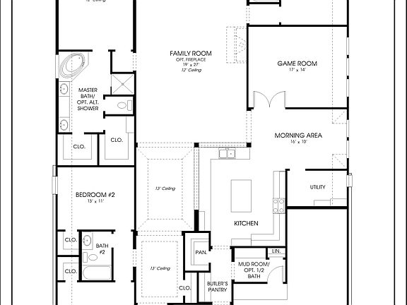 Library frames the entry with French doors. Formal dining room. Kitchen features and island, walk-in pantry and a Butler's Pantry. Family room a wall of windows. Game room wtih French doors. Master bedroom with three-large windows. master bath with dual vanities, a garden tub, a separate glass enclosed shower, and two walk-in closets. Guest suite with a walk-in closet and a full bath. Covered backyard patio. Mud room leads to the 3-car garage.