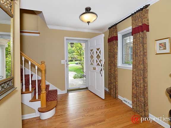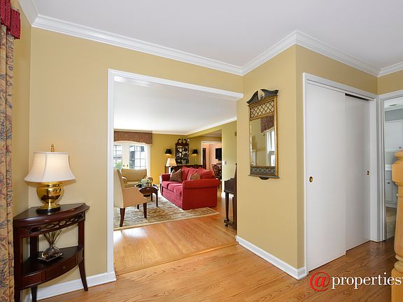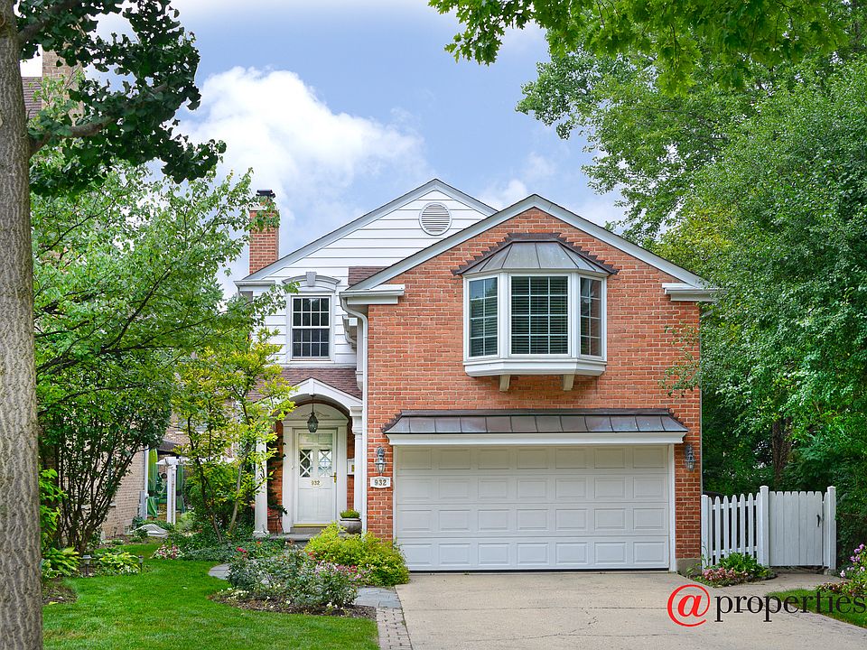 Beautifully maintained home with gorgeous hardwood floors, crown molding and lots of natural light throughout! Living room/dining room features fireplace with detailed white mantle and french doors that lead to deck overlooking amazing professionally landscaped yard. First floor family room with french doors leading to second large entertaining deck. Kitchen w/ white cabinets, stainless steel appliances & bright bay window. Four spacious bedrooms upstairs incl. A master suite w/ tray ceiling and skylights, walk-in-closet and private bath. Finished basement features a huge rec room, large utility room & lots of storage. Attached 2 car attached garage. Fabulous location and neighborhood in premier east Glenview. Glenview services and taxes - romona and new trier schools! Don't miss this one!