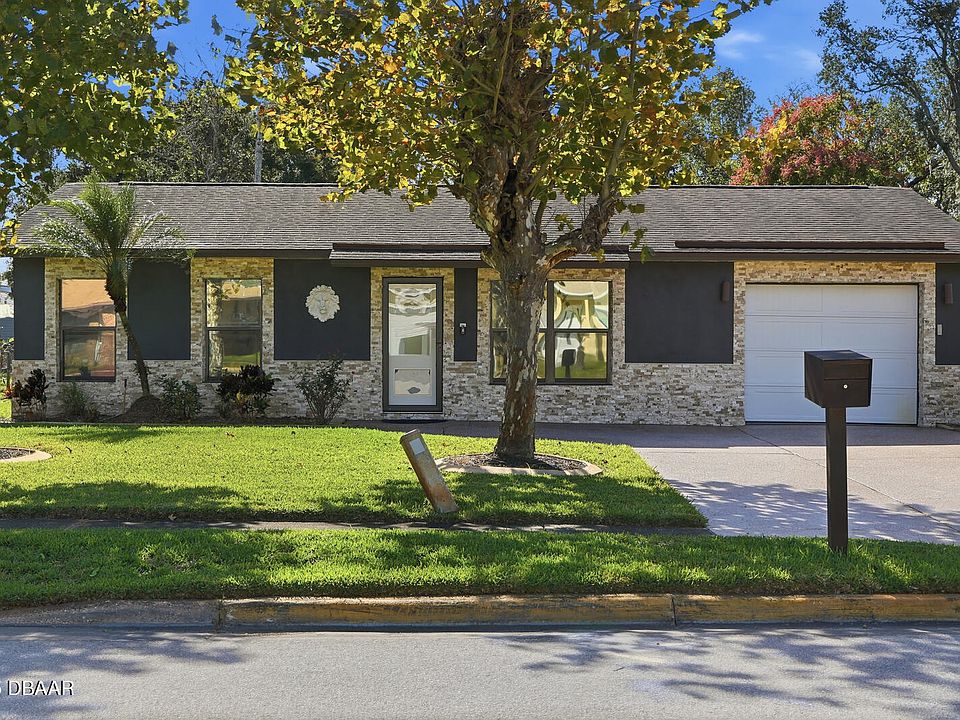 Welcome to this beautifully updated and move-in ready home in a quiet Daytona Beach neighborhood. The home's modern curb appeal features a stone façade, sleek dark accents, and a stylish front door. Inside, you'll find a bright open floor plan with luxury vinyl plank flooring throughout and a stunning remodeled kitchen with quartz countertops, stainless steel appliances, and soft-close cabinetry.