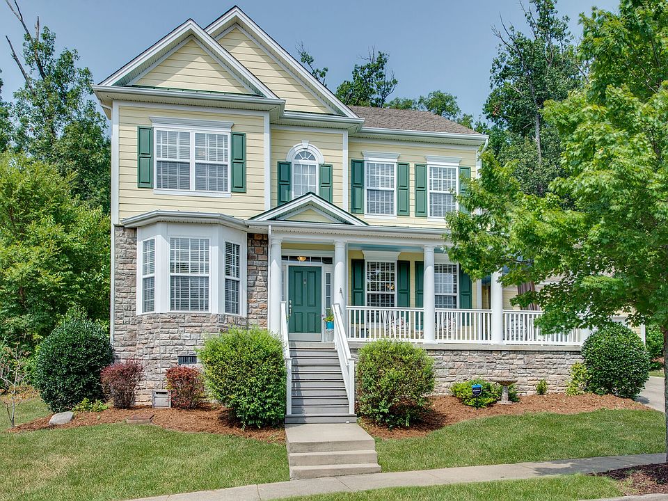 Immaculate home in Lenox Village! Expansive front porch wraps around home. Back yard has hot tub that stays and is private backing up to natural area..Hardwood floors throughout main living area boasting updated kitchen with lowered dining bar and stylish quartz tops. Updated double oven range, tiled backsplash, refrigerator, under cabinet lighting are features in kitchen. Large 3 seasons room added rear of home not incl in sq ftg. Full list upgrades media sect. Front yard just aerated by HOA.