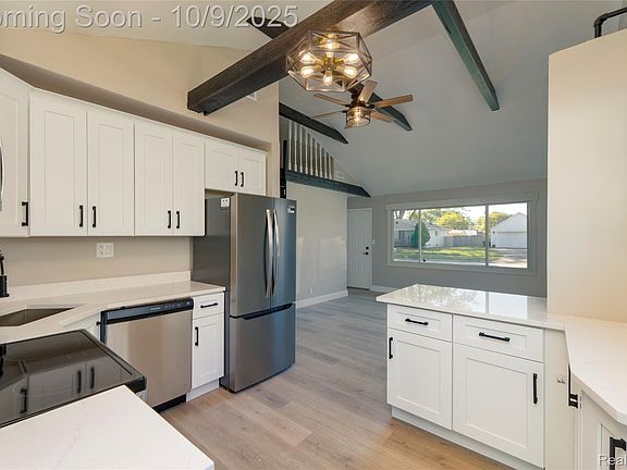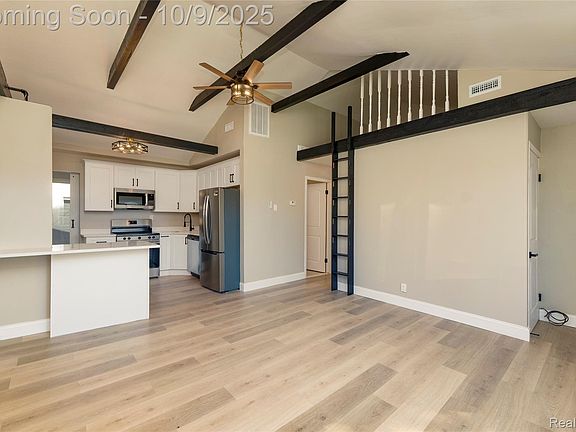 Stunning fully remodeled ranch featuring an open-concept layout with high ceilings and all-new flooring. The brand-new kitchen includes stainless steel appliances—refrigerator, dishwasher, stove/oven range, and garbage disposal—plus a large island and bar seating perfect for entertaining. Major updates include new furnace, central A/C, water heater, and roof, along with updated plumbing and electrical. Versatile loft space ideal for a home office or cozy retreat. Every detail has been thoughtfully designed for comfort and style. Move-in ready and located approximately one mile from Downtown Royal Oak’s shops, dining, and entertainment! Royal Oak Schools.