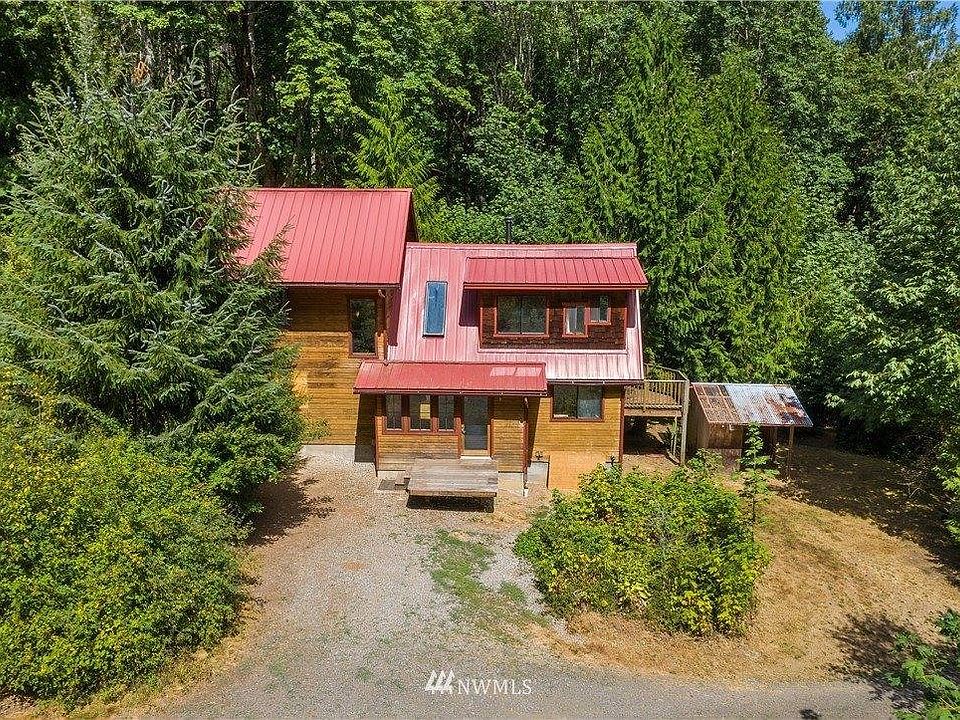 Unique and charming home nestled in a serene wooded acreage. Quality finishes includes metal roof, wood siding, tongue and groove ceiling, wood wrap windows, pine kitchen cabinets, ductless HP, jetted tub and tankless water heater. Property includes several outbuildings a play/tree house and a chicken coop. Home is 3 bedrooms, 2 bathrooms with one bedroom being on the main floor. Relax and entertain on your large deck while listening to all the surrounding wildlife. Plenty of room for gardens, RV, toys and pets. Great location in sought after Delphi area. Escape in your nature sanctuary while being only a few minutes drive from shopping and HYW. Come see it, you'll love it!