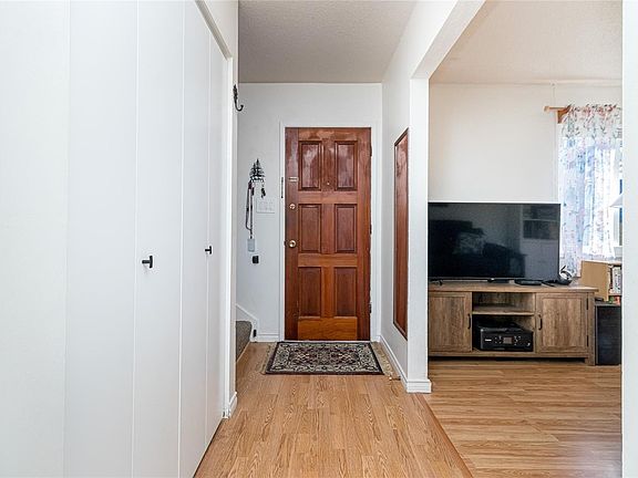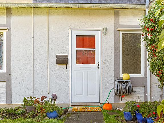 End unit 3 bed, 2 bath, townhome with a lot of sun exposure, centrally located Quadra Village & Hillside neighbourhood. Best Unit in the Complex: private, quiet corner at the back of the complex. Spacious and bright main level offers open living and dining room, kitchen, laundry room, 2pc bath, separate pantry/storage, as well as a covered, private patio and storage area. Upstairs there are 3 bed, 4PC bath. Laminate & vinyl luxury flooring, newer stove, thermal windows, installed exterior solar blinds on all windows, toilets replaced with low flow water. Heat Pump installed September 2025 for the new buyer to enjoy cooling in summer and warmer winter nights. Located within walking distance to all amenities such as cafés, restaurants, Fairways Market, Mayfair Mall, Topaz Park, Sports Field, playgrounds,  swimming pool, elementary school. Perfect for a small family or first-time buyers. Don't miss it, call your real estate agent now, it won't last long!