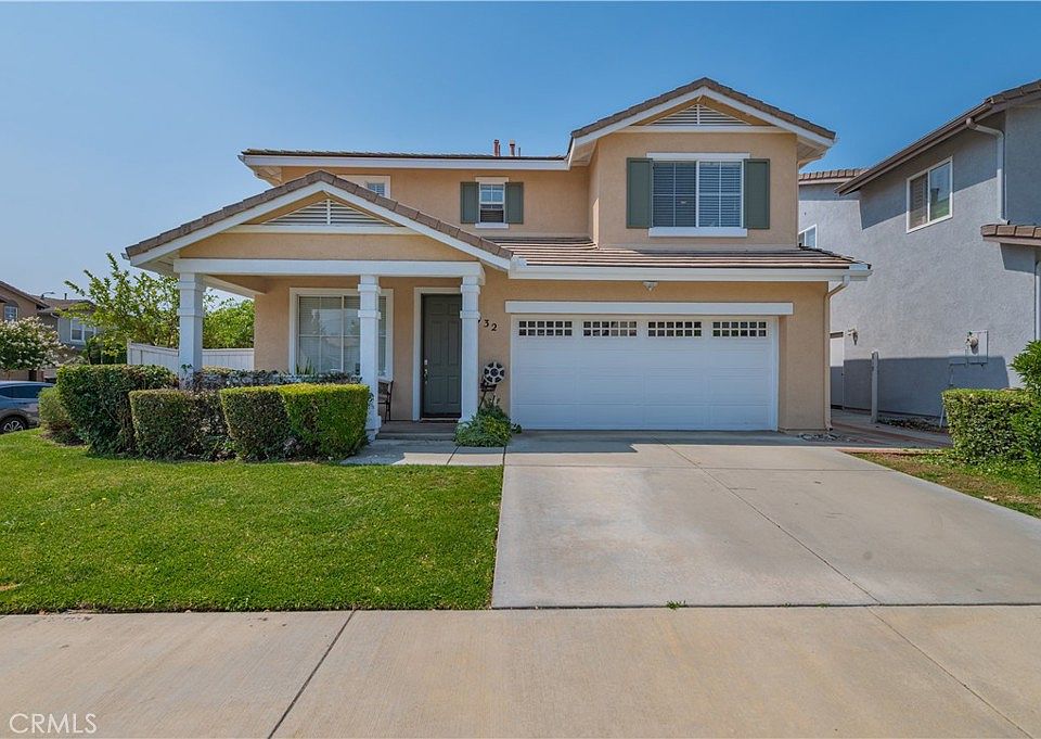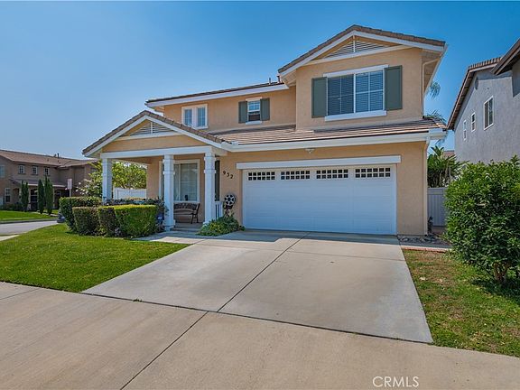 Beautifully maintained 4-bedroom, 2.5-bathroom single-family home situated on a spacious corner lot with great curb appeal and a welcoming front porch. This bright and airy home features marble tile flooring throughout the first floor and warm wood flooring from the stairs through the entire second level. All four bedrooms are located upstairs, offering privacy and comfort for the whole family. The upgraded gourmet kitchen with granite countertops, a large center island, built-in microwave, stainless steel appliances, and custom cabinetry. The open-concept layout connects the kitchen seamlessly to the family room, while a formal dining room provides an elegant space for entertaining. Newly exterior paint, direct access 2-car garage, no HOA fees, no Mello-Roos. Located within walking distance to Zacatecas Park and offering easy access to the 210, 605, and 57 freeways. Bright, stylish, and move-in ready—don’t miss this exceptional opportunity!