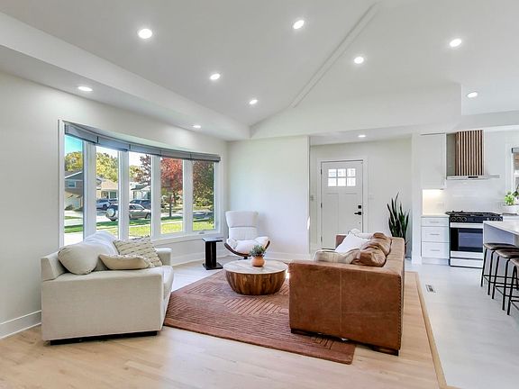 Stylishly-Updated, ~2,700 sq ft Split Level w/ Sub Basement near Woodland Park! Open Concept Living at its finest begins in the Foyer w/ Sleek Accent Wall, Bench & Cubbies that open to the Living / Dining Room with Hardwood Flooring, Vaulted Ceilings & Endless Recessed Lighting that bring all spaces into one. The Kitchen is a showstopper offering 42" White Shaker Cabinetry, Quartz Counter Tops & Backsplash, Gold Hardware & Fixtures, Samsung Bespoke Kitchen Package, Porcelain Tile Floors and massive Waterfall Island ideal for Entertaining. The Primary Bedroom offers double closets with private ensuite sectioned by frosted glass. White Shaker Vanity, Quartz Counter Tops, Stand-Up Rain Shower with Gold Fixtures, Hardware, and Pendant Light round out the room. 2nd & 3rd Bedrooms include ample closets that share the Fully Upgraded Hall Bath with a Double-Vanity, Quartz Counter Top, White Tub, Gold Fixtures and Porcelain Tile carried throughout. Trekking down to the Family Room- the huge room includes an Electric Fireplace with navy Herringbone Shiplap Design, Wet Bar w/ Quartz Counter Top, Beverage Cooler, Recessed Lighting Back Yard / Garage Access with a Walk-Out Door plus a Full-Sized Bath that's impeccably designed for guest use. Rounding out the Floorplan is the Sub-Basement that includes extra space for any use: Play Room, Rec Room, Gym, Study, etc. Luxury Vinyl Plank Floors, Black Exposed Ceilings, Can Lights and the Laundry Room that houses the Samsung Front Loader Washer & Dryer and a Utility Sink. 2-Car Detached Garage, Private Fenced Yard, and Patio Area complete the property. Minutes to Woodland Park with Soccer, Pickleball, Basketball Courts plus impeccable School Districts just blocks from Franklin & Emerson Schools. 5 min drive to Downtown Park Ridge / choice of 2 Metra Stops, and Highway Access! Nothing to do but move in!