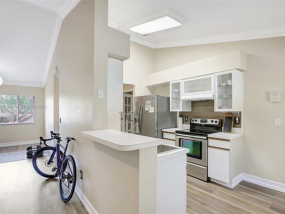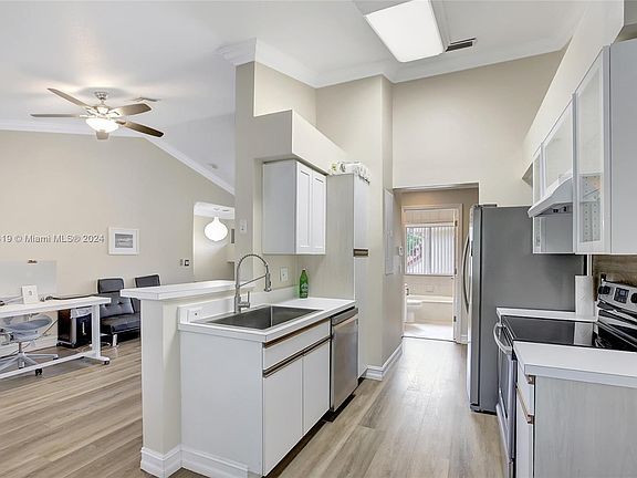 Discover this well-maintained, oversized one-bedroom, one-bathroom condo featuring a one-car garage and driveway. Nestled in the heart of Plantation, this charming coach-style condo is conveniently located near the newly developed Central Parc fine dining in the Midtown Plantation area. It boasts stainless steel appliances, in-unit washer and dryer, crown molding, vaulted ceilings, and an open-concept living space close to the community pool. The condo is equipped with complete hurricane accordion shutters for peace of mind. It also offers a spacious walk-in closet and additional side-by-side closet space in the bedroom. Its prime location offers close proximity to Sawgrass Mall and easy access to major highways. Come for a showing and make this your new home.
