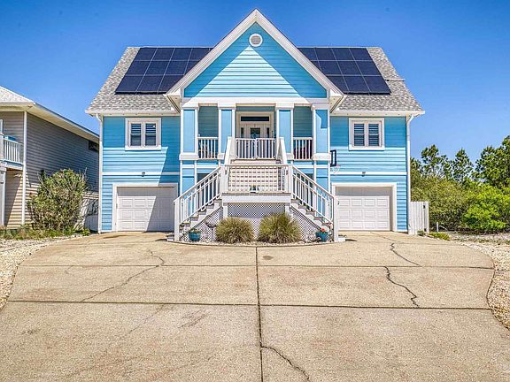 * Coastal Elegance: Walk to the Water from Your Luxury Retreat in Perdido! * Nestled in the sought-after Herons Walk community off of Johnson Beach Rd in Perdido, this coastal retreat offers the perfect blend of adventure and relaxation. Just half a mile from the Gulf Islands National Seashore Park and in front of the Intracoastal waterway. Enjoy the Gulf breeze from the spacious front porch or unwind on one of two back porches overlooking serene greenspace. With soaring ceilings and an open-concept layout, the main living area is designed for effortless entertaining. The kitchen features granite counters, under-cabinet lighting, and a generous pantry. The primary suite boasts space for a sitting area, direct porch access, and an ensuite with a soaking tub and walk-in shower. Upstairs, two identical bedrooms each have private baths and walk-in closets, while an additional bedroom and half bath are conveniently located on the second floor. Two deep garages provide space for vehicles, beach gear, a boat or a golf cart, leading to a versatile BONUS ROOM with storage space. If all that wasn't enough, the spacious laundry area (with a laundry chute from the first-floor bathroom) has access to the recently inspected fire suppression system, and the home is solar-powered! The low-maintenance backyard with K-9 turf stays green year-round, and an outdoor shower is perfect after a day of kayaking, paddleboarding, beachcombing, or after a swim in the Heron's Walk pool. Whether a private getaway or an income-producing rental, this stunning home is a must-see!