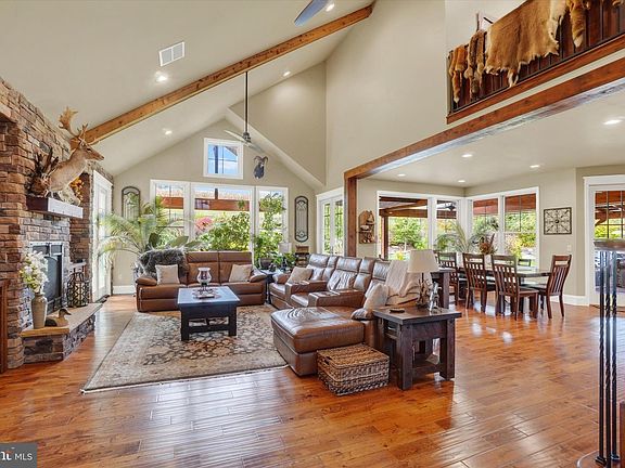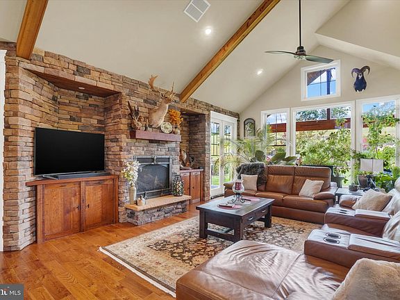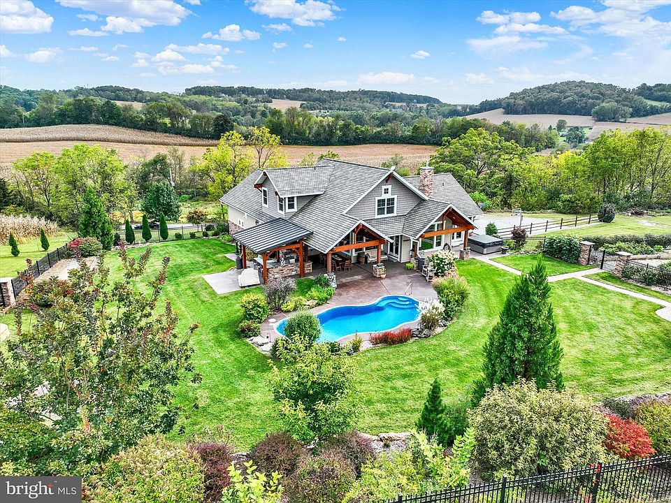 Discover refined Southern York County living in this meticulously crafted custom home, offering 3,099 sq. ft. of finished luxury tucked away on 4.03 scenic acres, just minutes from I-83 and the MD line. This rare estate includes the home site on a 2.14 acre parcel, plus a second 1.89 acre buildable parcel with its own well, perfect for future expansion or multigenerational living. Built to the highest standards with premium materials and appointments, this 3 bedroom, 2 full- and 2 half-bath home boasts a Superior Wall foundation, spray foam insulation, Royal Select siding, and a combination of Timberline 50-year shingle and standing metal seam roofing for lasting durability. Enjoy elevated outdoor living with Amish-built post and beam patios, copper caps, a built-in saltwater pool, and a fully outfitted outdoor kitchen with Twin Eagle grill and Perlick refrigeration, artfully framed within custom wrought iron gates and fencing. Inside, the main level impresses with a chef’s kitchen featuring a 48” Monogram dual fuel range with handy pot filler and commercial hood, 48" commercial grade Sub-Zero refrigerator, wine service with beverage chiller and large prep island, flowing into a sunlit dining area and cozy 2-story living room with stone fireplace, walls of windows and custom built-ins. The main level primary suite enjoys a private exit to the patio and hot tub area, a spa-inspired bath with stone tile two-person shower and walk-in closet with built-in organization. Upstairs, the second-floor loft area offers an impressive view of the main floor, and opens to two generous bedrooms, a full bath and a huge unfinished bonus room over the garage ready to expand your living space. Additional highlights include a phenomenal lower-level game room with wet bar, custom Olhausen pool and shuffleboard tables, competition-size air hockey table, half bath and walk-out exit to the lower-level covered patio, plus workout area and additional unfinished space for storage or future growth. A supplemental commercial grade Sub-Zero freezer ensures your larder is always fully stocked. Established gardens, including apple, fig and peach trees, asparagus bed, blueberry patch, herb gardens, raised beds and dedicated area to raise your chickens or bunnies, offer ample outdoor space for homesteading. This is a one-of-a-kind rural estate blending timeless craftsmanship, rural serenity, unparalleled amenities and future potential. Don’t miss this rare opportunity!
