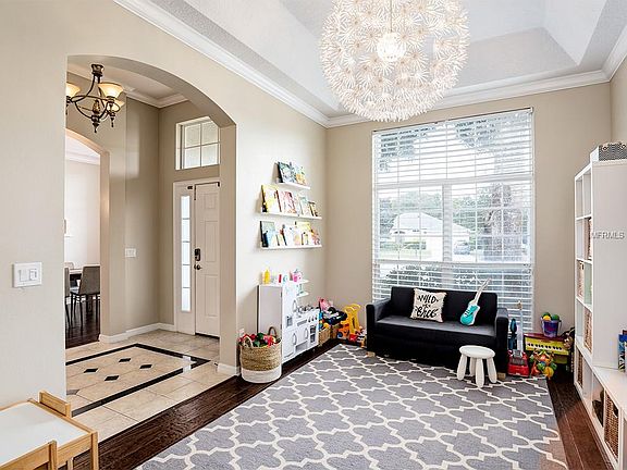 Lovingly maintained home in the Casselberry Golf Club area! The high ceilings in the foyer welcome you into this gorgeous home which offers 11' tray ceilings, crown molding, large windows and wood flooring. The spacious family room with ceramic tile opens to the covered lanai through the wall of sliding glass doors. The kitchen is perfect for gatherings with a center island, counter seating, and newer stainless appliances. The three bedrooms offer versatility while the master suite is a perfect retreat with a large soaking tub, his/her closets and private access to the patio. The second floor offers a fully finished flex-room with a wet bar, mini-refrigerator, built-in desk plus a half bath! Cul-de-sac location, large, fenced backyard, workshop/utility shed with electricity and a mini basketball court are just a few of the extras. This home is move-in ready with a brand new AC just installed 10/2018 and motivated sellers!