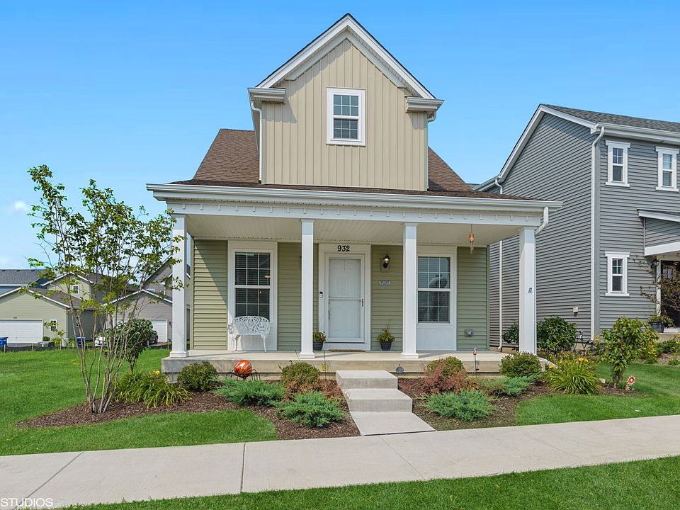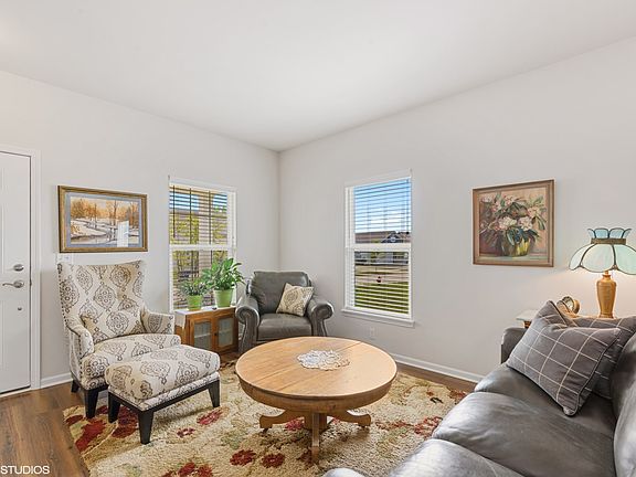 Why wait for NEW CONSTRUCTION? This low maintenance ranch with a inviting front porch is READY today in the Elburn Station subdivision with 3 bedrooms, 2 bathrooms and unfinished basement. Main living area has WIDE PLANK laminate flooring, 9 ft ceilings, and 6 panel white doors/trim throughout. Upgraded kitchen SHOWCASES granite countertops, farm sink, 42' Aristokraft white cabinets, and stainless steel appliances. This open concept home has LOADS of natural light in family room and dining room with plenty of space. Laundry room CONVIENTLY located on the first floor includes washer and dryer with closet. The sliding glass door leads to a private 10X10 deck which is a great place to UNWIND after a long day at work. Primary bedroom with walk in closet. 2nd bedroom with closet. Hall bathroom with walk in shower, counter height vanity, and comfort height toilet rounds off the 1st floor. 2nd floor has 3rd bedroom, closet and private bathroom and a bonus room waiting to be finished. 2 car garage. Let the ASSOCIATION take care of the lawn care and snow removal. Sit back and RELAX! Walk to the METRA station, close to shopping, restaurants, parks, elementary school and I88 access. A place to call HOME!